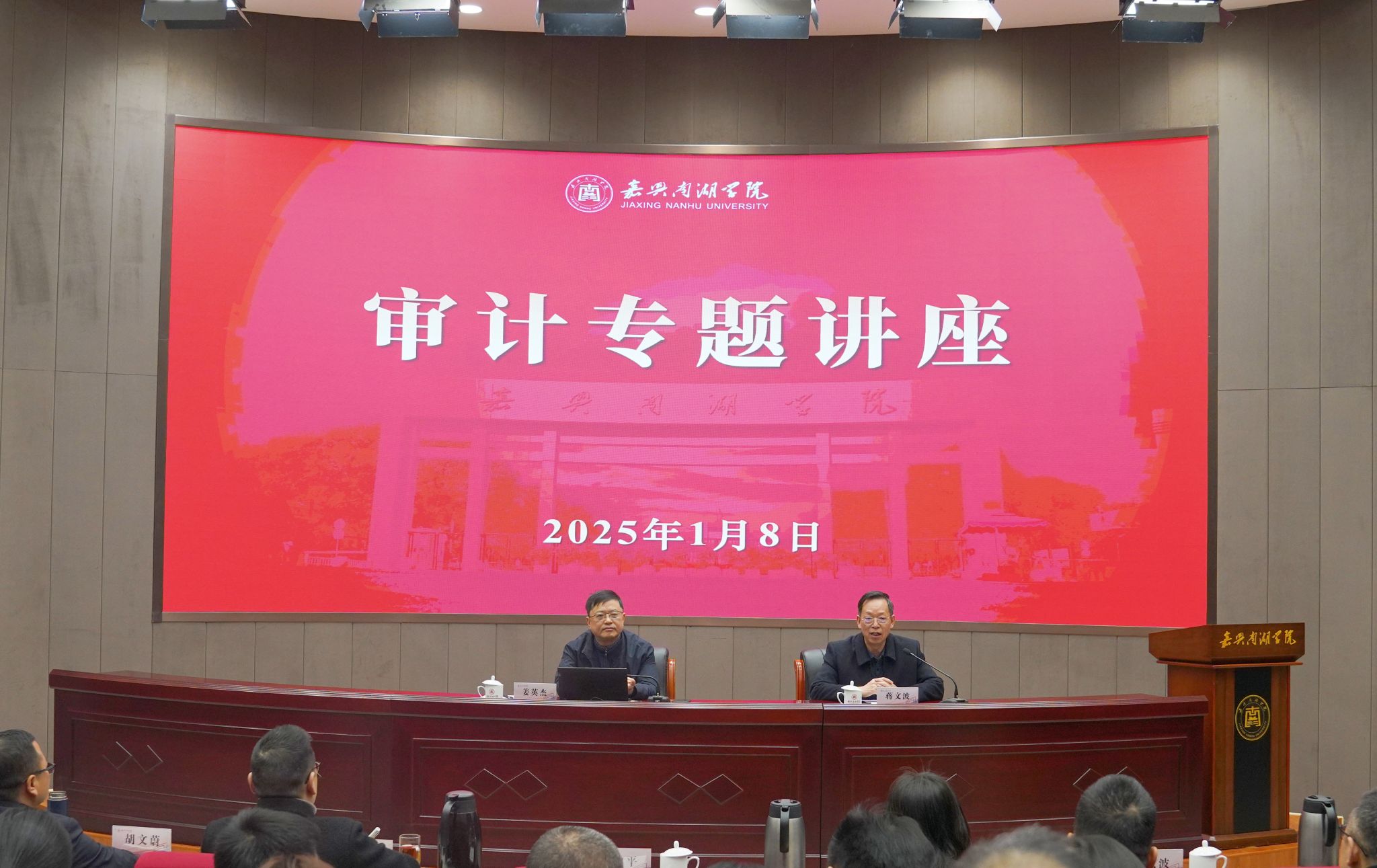 为进一步提高学校治理水平,推动更加规范、更高质量发展,1月8日上午,学校邀请浙江省审计厅二级巡视员姜英杰作审计专题讲座。全体校领导、全体中层干部及相关单位人员参加讲座。副校长、党委委员蒋文波主持讲座。
