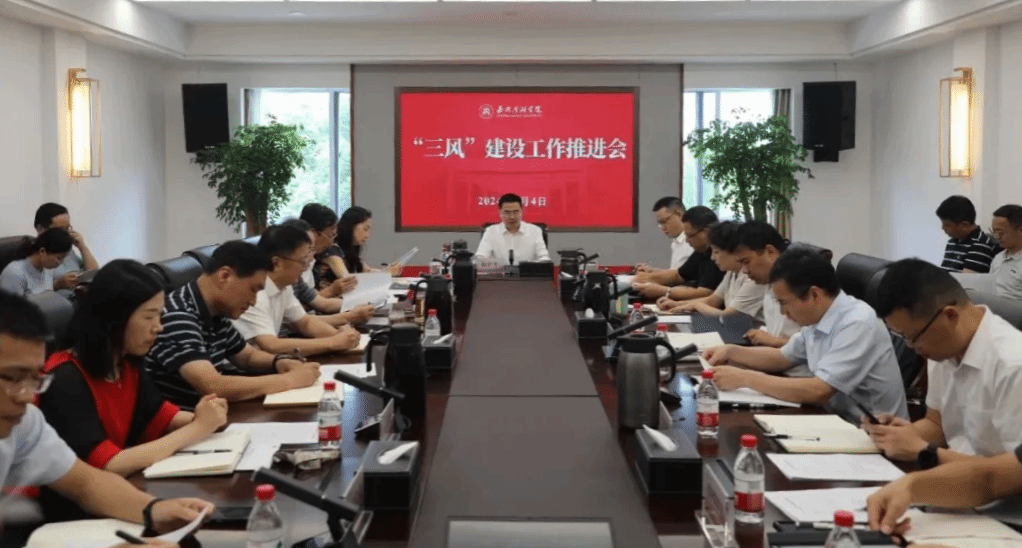 9月4日下午,学校举行“三风”建设工作推进会。会议由校党委书记倪沪平主持,全体在家校领导、学校相关部门和二级学院负责人参会。